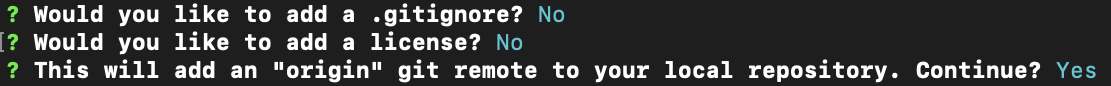Don’t add a license or a .gitignore. Do add an “origin” git remote.